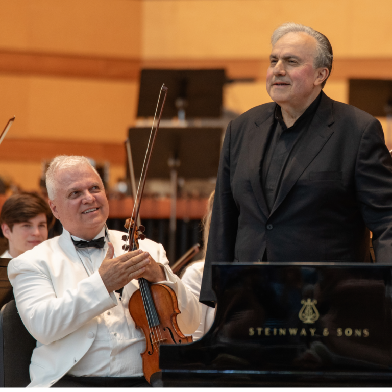 Multiple Grammy winner Yefim Bronfman has been described as an artist "for whom no score is too demanding." Hear his remarkable affinity for Beethoven in one of his signature works, the Fifth Piano Concerto. It's believed that for unknown reasons, a publisher later added the title "Emperor" to Beethoven's last and most ambitious piano concerto. Beethoven would not have approved, especially since the real emperor, Napoleon, was bombarding his adopted city of Vienna at the time the piece was written. Relax into the serene slow movement and let all your cares melt away, then exult in the euphoric energy of the finale.